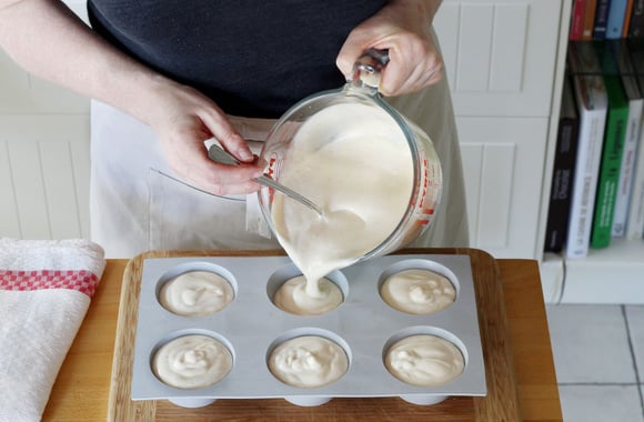 6Versez le mélange "parfait" dans des cercles tapissés de rhodoïd ou dans un moule à muffins en silicone. Mettez au congélateur pour une nuit.