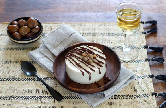 10Démoulez les parfaits glacés, ajoutez un peu de sauce au chocolat et de châtaignes concassées. Servez avec un verre de Saussignac ou de Rosette.
