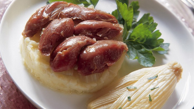 - 4Disposez dans un cercle une couche de purée, puis une couche de céleri et finissez par une couche de canard.