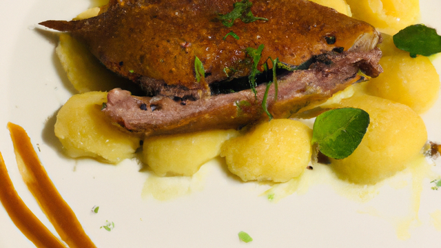 Disposer dans un plat à gratin une couche de purée "verte", le canard dégraissé et émietté, puis la purée "blanche". Terminer par de la chapelure.