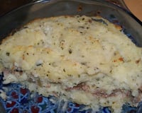 6. Disposer enfin une couche de purée dans un plat, ensuite une couche de hachis de Canard et de nouveau une couche de purée. Parsemer de 4 noisettes de beurre salé sur le dessus et de parmesan. Mettre au four, environ 20 minutes (il faut que ce soit légèrement dorée)