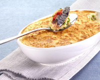 Incorporez à la purée les filets de maquereaux à la catalane, mélangez délicatement en ajoutant l'emmental et la ciboulette ciselée.