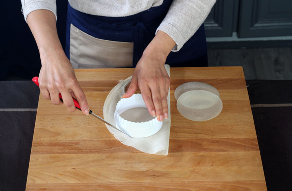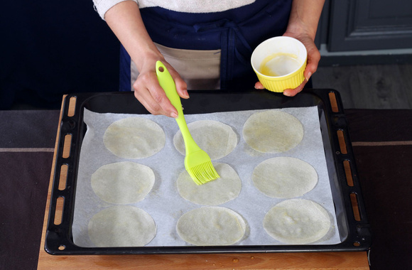 Badigeonnez les cercles de pâte à brick de beurre fondu.