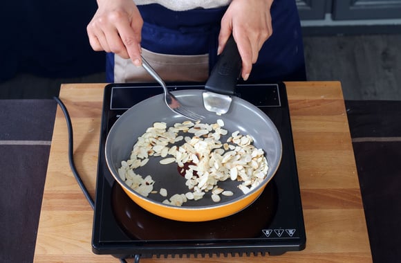5Faites dorer les amandes à sec dans une poêle antiadhésive et réservez.