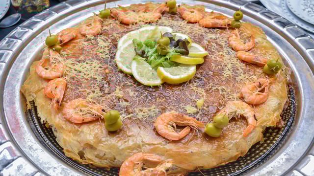 Une fois que les pastilla sont prêtes, servez-les chaudes. Vous pouvez les décorer avec des crevettes et des rondelles de citron sur le dessus.