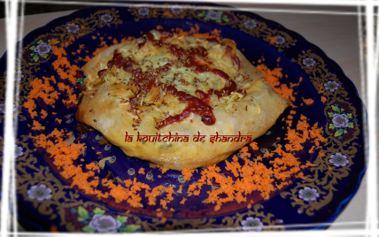 - Dorer avec le jaune d'oeuf, puis les graines de sésames, le ketchup et éventuellement les frisotti de feuilles de bricks.
