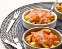 Disposez les pommes de terre dans des petits ramequins (type ramequin à crème brûlée) et nappez-les de sauce.