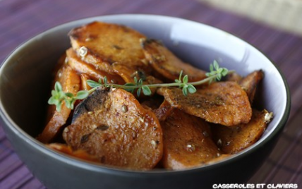 Faites cuire 15 à 20 minutes en retournant les rondelles de patates douces en cours de cuisson. A la sortie du four, parsemez de fleur de sel.