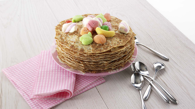 Dans une poêle très chaude (c'est tout le secret d'une cuisson réussie), versez une petite louche de pâte, et retournez à mi-cuisson. C'est prêt !