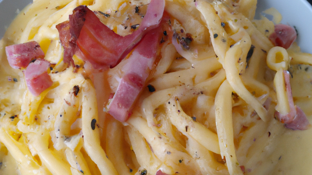 Faire cuire les pâtes, puis dans une poêle faire revenir un oignon coupé en morceaux avec de l'huile ensuite mettre les lardons et laissez dorer