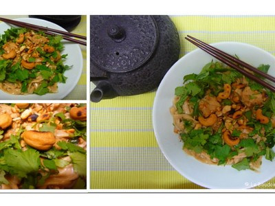 Soba au lait de coco, noix de cajou, coriandre et citron vert