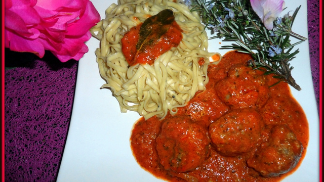 Les égoutter et rajouter 2 càs d'huile d'olive. Servir chaud, avec en accompagnement les boulettes en sauce.