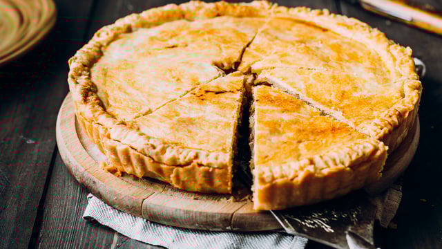 Recouvrir de la seconde pâte. Rabattre les bord, sans oublier de faire une cheminée au centre pour l'assez s'échapper la vapeur
