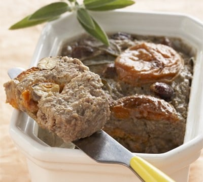 Un pâté léger, totalement onctueux et goûteux, à l'agneau, abricots, noisettes, sauge et épices. A tartiner et re-tartiner.