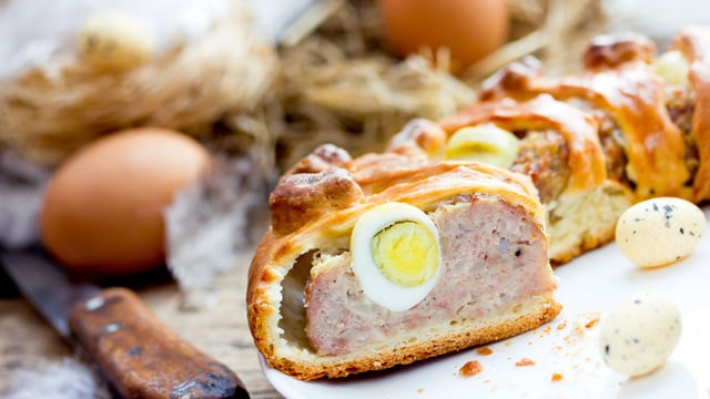 Pour le repas de famille de Pâques ou de Noël, il y a des goûts et des textures qui évoquent de précieux souvenirs. C'est l'évidence, cette recette de pâté de Pâques de grand-mère est un classique indémodable de la gastronomie française. Pour réussir la farce de ce pâté, vous avez besoin de chair à saucisse et de poitrine de bœuf. Vous allez parfumer ce mélange de viandes avec de la moutarde forte, du persil, un oignon blanc, de l'échalote ainsi qu'une gousse d'ail. Ensuite, à l'intérieur de deux pâtes feuilletées, vous allez disposer des œufs durs ainsi que cette fameuse farce à la viande aux herbes aromatiques. Après avoir fait dorer la pâte feuilletée avec un jaune d'œuf, faites cuire le tout pendant au moins une heure. Laisser reposer le pâté dix minutes avant de passer à l'étape de la dégustation. Enfin, n'hésitez pas à rajouter un peu de salade verte en accompagnement. C'est un délice !