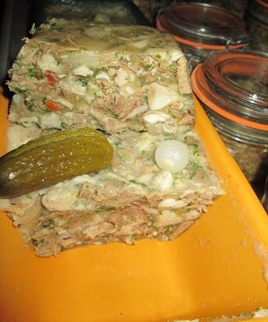 Faites cuire dans une cocotte minute, la tête de porc avec l'eau et les autres ingrédients sauf le persil.
