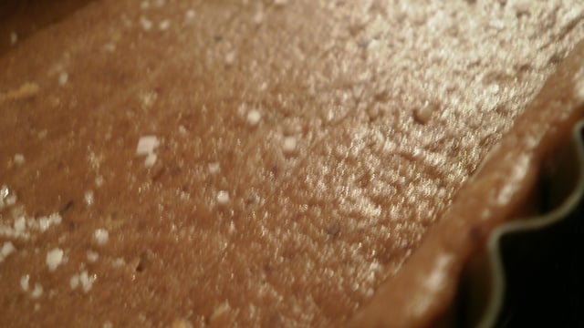 Foncer un moule à tarte et parsemer de fleur de sel.