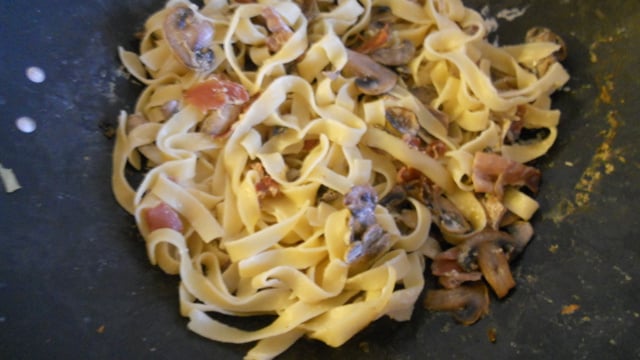 - 4Mélanger avec la sauce aux champignons.Déguster.