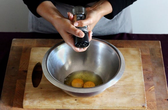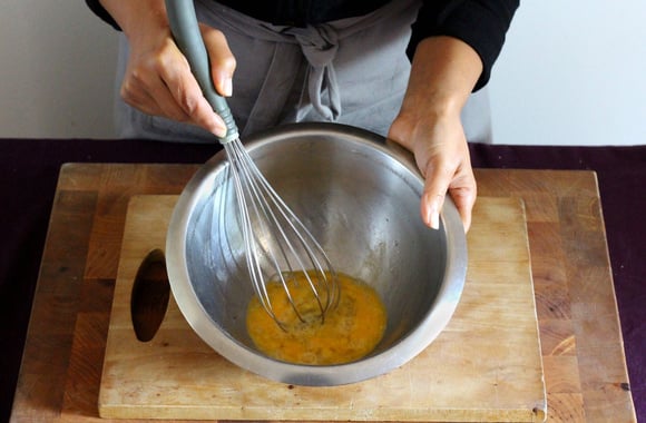 2Cassez les œufs dans un grand saladier.