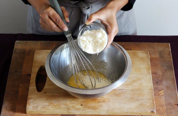 6Ajoutez peu à peu le parmesan râpé.