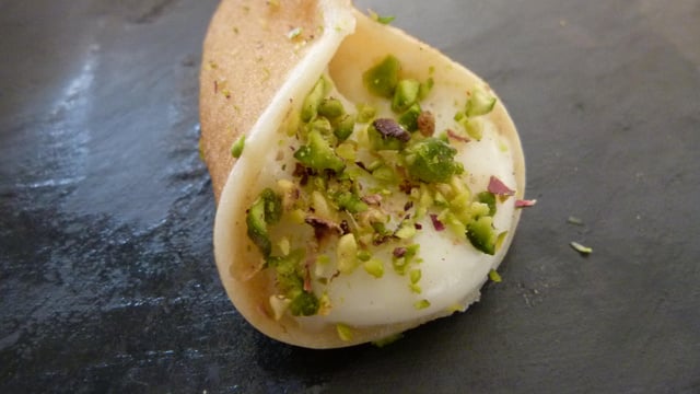 Dans la gastronomie libanaise, les atayef ont une forme de crêpe. Pour leur donner du goût, vous allez les parfumer et les farcir avec une crème ainsi qu'un ater (sirop de sucre) libanais. Pour ce faire, vous allez utiliser du lait en poudre, de quelques gouttes de fleur d'oranger et du jus de citron jaune. Juste avant de déguster vos atayef, vous allez les laisser reposer quelques minutes au frigidaire. De cette manière, ça sera plus simple de former un cornet. Ensuite, vous allez les saupoudrer avec quelques pistaches concassées. Dès la première bouchée de vos atayef, toutes les saveurs de ces atayef vont exploser dans la bouche des gourmands. Il ne va pas en rester une miette !