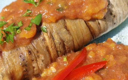 Découpez des grands carrés de film alimentaire, disposez dessus 3 ou 4 tranches d'aubergines, en prenant soin de faire chevaucher les tranches entre elles. Disposez sur les tranches un peu de ratatouille froide. Roulez ensuite les tanches sur elles-même en vous aidant du papier film, bien les serrer. Roulez les extrémités du film entre vos doigts pour bien former les paupiettes, puis les mettre au frais. - 3
