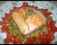 Faites cuire les pavés de saumon 3 à 4 mn de chaque coté dans une poêle antiadhésive.