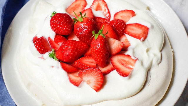 La pavlova est un dessert à base de meringue, crème fouettée et fruits, nommée en honneur de la ballerine russe Anna Pavlova. Selon la saison et vos préférences, n'hésitez pas à remplacer les fraises par d’autres fruits !