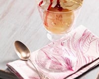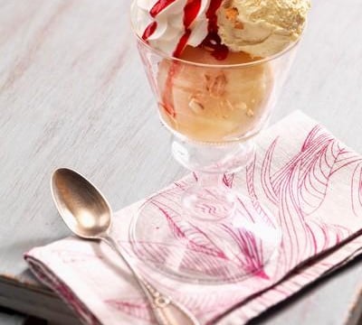 Dresser les coupes en répartissant dans chacune 2 moitiés de pêche et une boule de glace à la vanille. Décorer d'un peu de crème Chantilly, de quelques amandes effilées et d'un filet de coulis de framboise. Déguster sans attendre. Si vous n'avez pas de pêches fraîches, vous pouvez réaliser cette recette avec des oreillons de pêches au sirop. Dans cette éventualité, dresser directement les coupes sans bien sûr faire pocher les pêches.