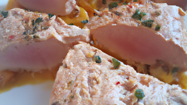 Répartir dans les 1/2 pêches et présenter sur un lit de laitue.