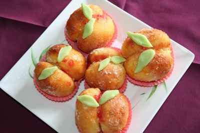 Cuire à four préchauffé à 180° C pendant 10 minutes environ ou jusqu'à ce que les brioches soient dorées.