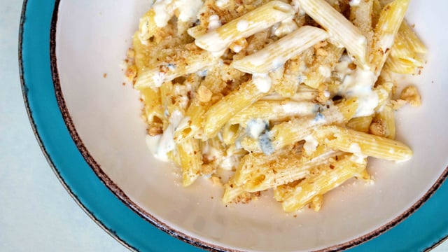 Une belle association de saveurs pour ce plat de pâtes très simple et facile à réaliser :-)Et parfait si comme moi il vous reste un beau morceau de gorgonzola et quelques noix qui s'ennuient... on fait avec ce qu'on a quand le frigo est quasi vide ! ;-)