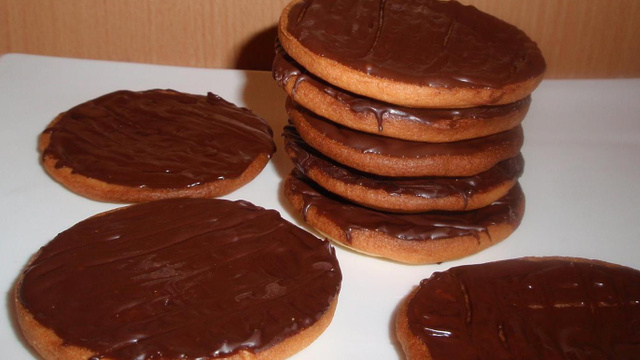 Faire fondre au bain marie le chocolat. L'étaler sur les petits sablés et réaliser des stries dans les deux sens avec une fourchette. Laisser le chocolat durcir.