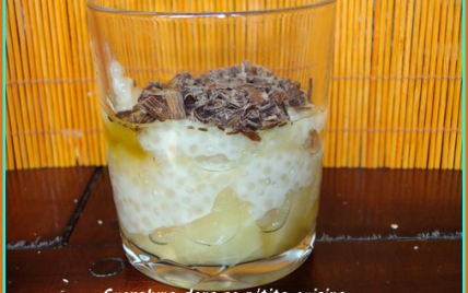 Ou comment Sucrelyne découvre et teste de nouveaux ingrédients !Je ne connaissais les perles de Japon que par l'intermédiaire des blogs culinaires et j'avais acheté un paquet de ces perles en pensant que je trouverais bien une occasion pour faire un test. et bien c'est chose faite!Lorsqu'elle sont cuites, les perles de Japon ont une consistance assez curieuse, collante, voire très collante.Elles se marient très bien avec le lait de coco et ce mariage donne une verrine à connotation très exotique, estivale, surtout si on l'accompagne de morceaux d'ananas et d'un filet de coulis de citron vert.