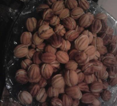 Pour le moule à coquilles. Mettre de la maïzena sur vos moule et mettez la pâte d'amande dedans, faites pareils Jusqu'à épuisement de la farce. Mettre les moules sur une plaque de gaz et retourner au bout de 5 minutes. Mettre la farce dans les coquilles. Avant que ça sèche collez une coquille par dessus et l'autre par dessous et laissez prendre. C'est prêt !