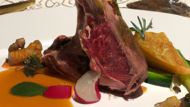 Gigot d'agneau farci puis rôti arrosé d'un jus légèrement Jus d'agneau parfumé citron, safran