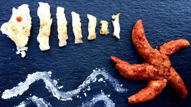 Filet d'églefin accompagné de son étoile de mer au pesto rosso espresso
