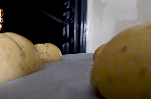 5Après la pousse, réaliser une incision sur vos boules de pains. Mettre le four à 225°C et verser dans la plaque du four un peu d'eau, permettant de créer une vapeur et de donner un bon développement à vos pains ainsi qu’une belle couleur.