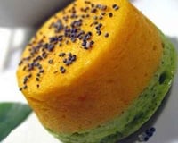 Verser délicatement dans les moules une petite quantité de crème de carottes et par dessus une petite quantité de crème de courgette. Calculez l'effet désiré en fonction de l'épaisseur des superpositions que l'on souhaite réaliser et tenir compte du fait que les préparations vont légèrement gonfler.