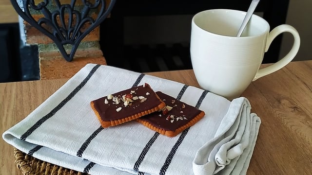 Concassez vos noisettes et parsemez les biscuits avec. Placez-les au réfrigérateur pendant une nuit ou une journée pour que le chocolat ait bien le temps de durcir. Vous pourrez alors les déguster autour d'une boisson chaude.