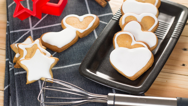 Découper des cœurs et des étoiles à l'aide des emporte-pièces et les déposer sur une plaque de four recouverte de papier sulfurisé.
