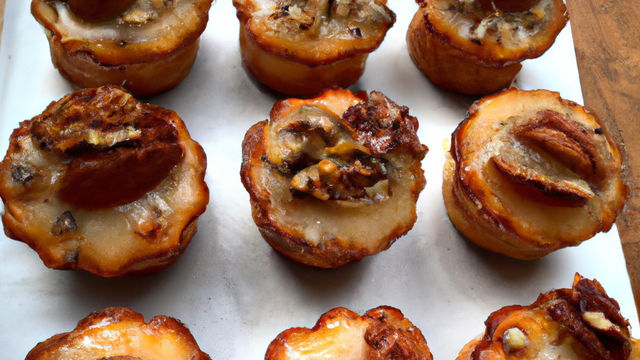 Beurrer les moules. Garnir les moules aux ¾ et parsemer de noix et noisettes hachées.