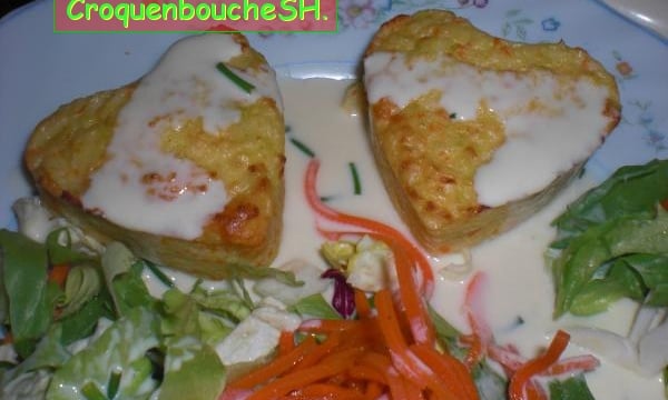 Servir 2 petits coeurs avec de la sauce citronnée et des crudités.