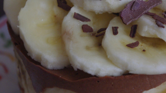 Une fois la mousse prise, décorez de rondelles de banane et de copeaux de chocolat.
