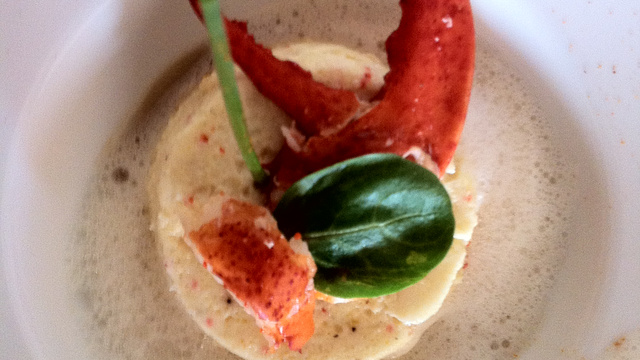 Démoulez les ramequins dans des assiettes individuelles creuses (type assiettes à pâte). Sur chaque flan, disposez une pince de homard et des herbes pour le décor.
