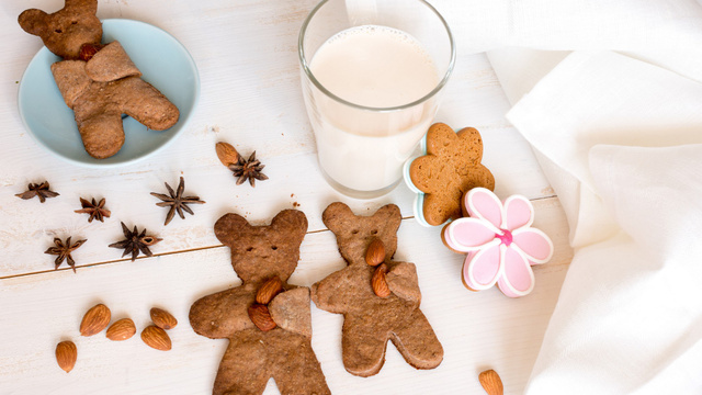 Les déposer sur une plaque de cuisson recouverte de papier sulfurisé et déposer une amande au centre de chaque ourson, replier un bras, puis deux, pour décorer. Puis enfourner pour 12 à 14 minutes dans un four préchauffé à 170°C. Laisser complètement refroidir avant de déguster.