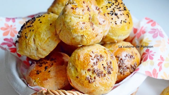 Bonjour à tous! De jolis petits pains déjà garnis à l'intérieur. Ils pourront être servis à table en attendant le plat principal! Avec une belle couche de beurre de ferme froid, c'est super bon!!