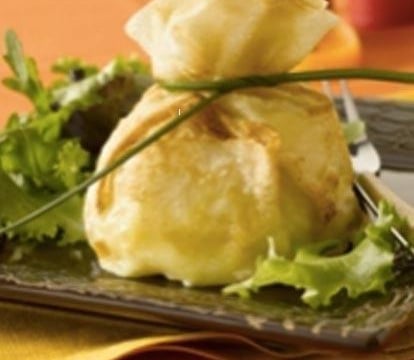 De délicieuses aumônières de poisson au maroilles Fauquet.