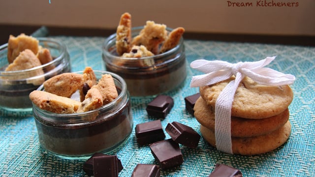 Servez avec des morceaux de cookies cassés sur les crèmes.