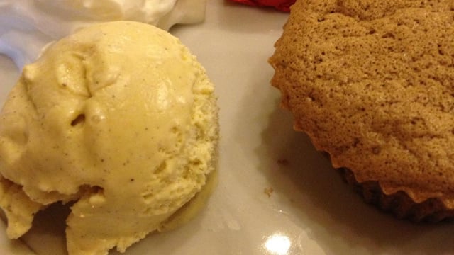 Démouler, et servir très vite, encore chaud, avec une quenelle de glace et un peu de crème fouettée.....